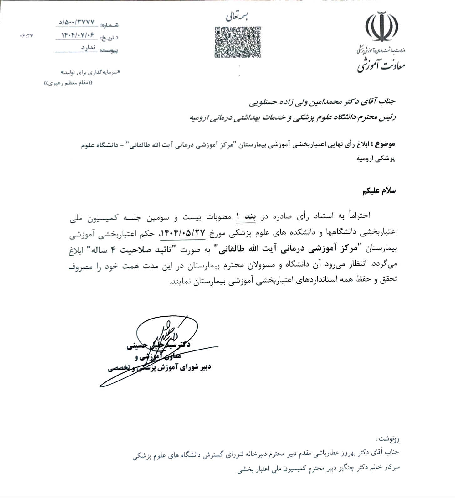 تقدیر از مدیریت آموزشی درمانی آیت ا... طالقانی